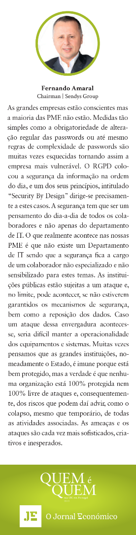 As grandes empresas estão conscientes mas a maioria das PME não estão. Medidas tão simples como a obrigatoriedade de alteração regular das passwords ou até mesmo regras de complexidade de passwords são muitas vezes esquecidas tornando assim a empresa mais vulnerável. O RGPD colocou a segurança da informação na ordem do dia, e um dos seus princípios, intitulado “Security By Design” dirige-se precisamente